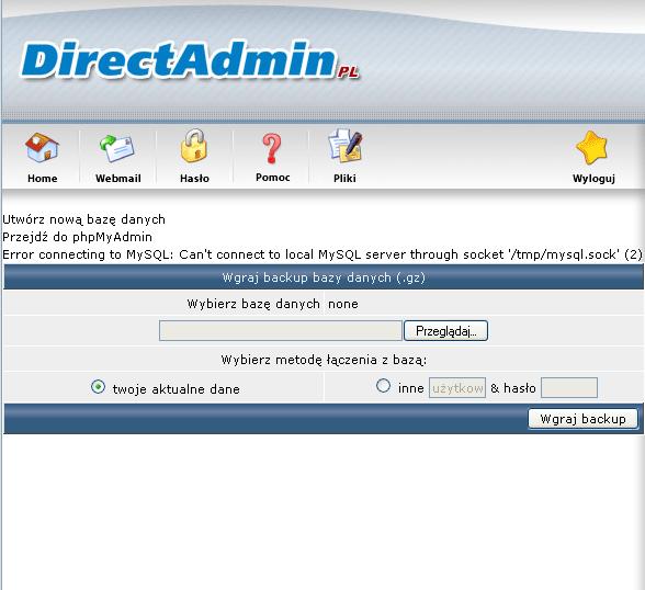 2. Sprawdź, czy w jakichś plikach konfiguracyjnych directadmina nie masz wprowadzonego socketa wskazującego na folder /tmp zamiast na /var/run/mysqld (domyślnie) albo na odwrót. Myślę, że mysql chodzi sobie a Ty próbujesz uruchomić directadmina z ustawieniami, które nie są w stanie znaleźć "gniazda" mysql'a. Dlatego po wykonaniu linka symbolicznego działa bez problemu.
