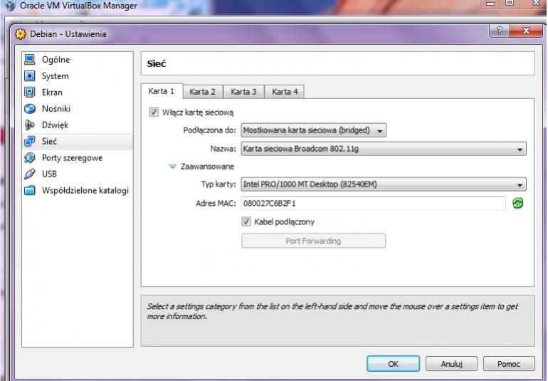 Następnie po przeniesieniu na następnego gospodarza system został skonfigurowany do działania w sieci domowej z dostępem do internetu.