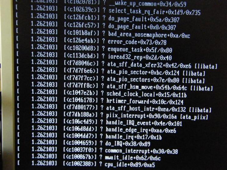 Z góry przepraszam za jakość tego zdjęcia (zrobię lepsze przy następnej awarii). Nie mogę tych błędów znaleźć nigdzie w logach, żeby przedstawić w czytelniejszej formie. Nie mam pojęcia co powoduje ten błąd, lekarstwem jest wciśnięcie przycisku reset i ponowny rozruch.