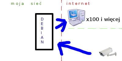Chcę przepuścić sygnał z kamery będącej poza zasięgiem mojej sieci, przez mój serwer, tak aby mogła zobaczyć z niej obraz duża ilość użytkowników. Od strony kamery mam słabe łącze, jakieś 512kb/s, a od serwera jakieś 10Mb/s na wysyłanie. Kamera jest na zewnętrznym IP, jak i serwer. Pomiędzy kamerą, a internetem jest serwer IP będący wyjściem cyfrowym.