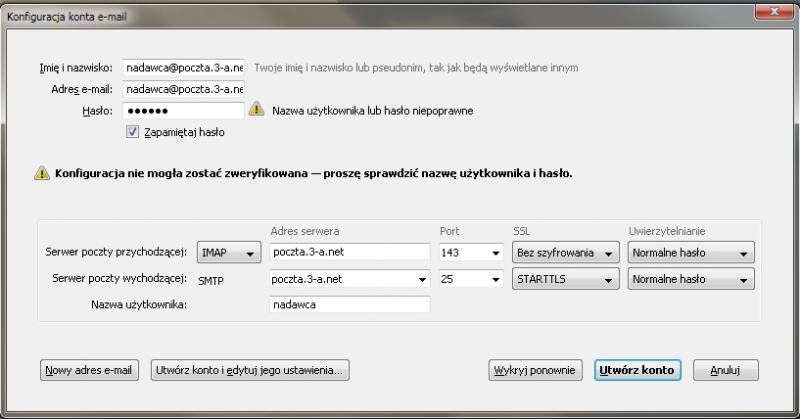Jak widac, twierdzi ze jest blad autoryzacji - oczywiscie uzytkownik istnieje i haslo podawane jest dobre. Podpowiecie mi w czym problem?