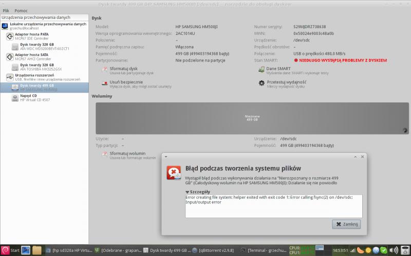 Cześć. Posiadam kieszeń z dyskiem od hp'ka ale dysk się posypał i postanowiłem go wymienić. Po wymianie jest problem taki że nie mogę wejść w dysk. Po otwarciu oprogramowania do zarządzania dyskami wszystko jest widoczne tzn Dysk twardy 500gb (który jest podpięty do kontrolera) oraz Napęd CD HP Virtual cd 4507 (udziwnienie od hp'ka które uniemożliwia normalną prace) Czy ktoś spotkał się z takim problemem i jest możliwość naprawy tego dziwactwa? Czy kontroler można już spisać na straty i pożegnać się z dyskami zewnętrznymi hp? :/