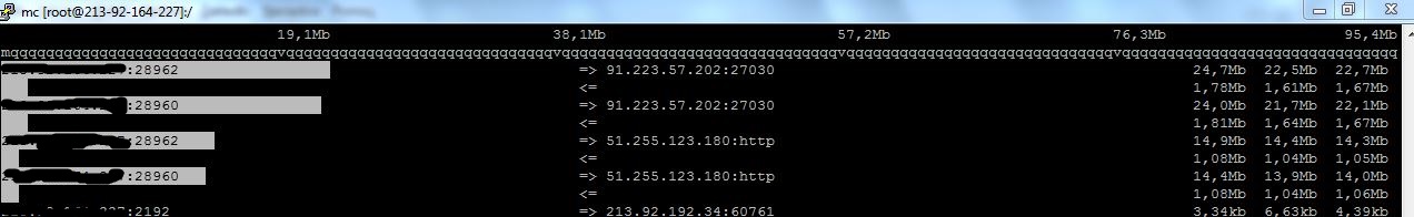 Cały czas borykam się z problemem "ataku" mojego serwera i największe obciążenie zaobserwowałem na otwartych portach serwera gry i serwera TS3, który stoi na mojej maszynie ale tylko w czasie kiedy te usługi działają (wysyłanie dochodzi nawet do 90Mb/s)