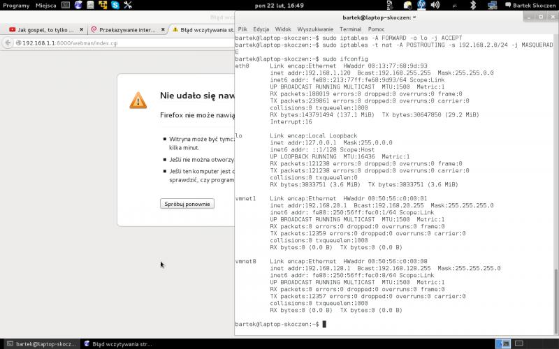 Modem pod USB ---> Laptop z debianem 7 i jednym eth ---> router