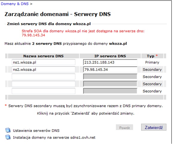 panelu OVH mojej domeny mają pozostać nie zmienione DNS-y OVH czyli: