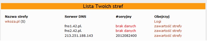 Dobrze, chyba wszystko działa. Zmieniłem ustawienia freedns ze strefy zapasowej na podstawową, w ustawieniach podałem adres IP serwera VPS (by zaimportować z niego ustawienia), także całą konfigurację strefy freedns pobrał sobie sam. Tym samym w panelu OVH udało mi się wreszcie zmienić standardowe DNSy dostarczane przez OVH na moje własne: ns1.wkoza.pl, ns2.wkoza.pl. Bastian, a czy muszę jeszcze zmodyfikować plik resolv.conf ? Czy istnieje możliwość sprawdzenia czy rzeczywiście domena w 100% została podpięta pod mój serwer?
