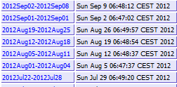 22-28 Jul (OK), dziura w raporcie - brak 29-31 Jul, 1-4 Aug (niepełny tydzień), 3 tygodnie zaraportowane (OK), znowu dziura, 1-1Sep - niepełny tydzień, i tak wszędzie.