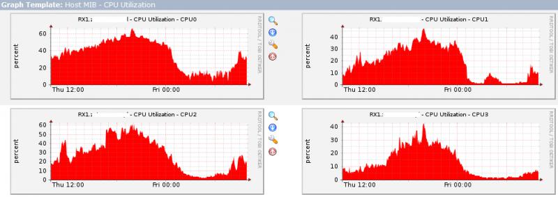 Drobna aktualizacja: zmieniłem maszynę (a przy okazji też i wersję systemu z Debiana 6 na Debiana 7) i irqbalance przestał działać jak trzeba, obciążył tylko dwa pierwsze rdzenie, dwa ostatnie się nudzą.