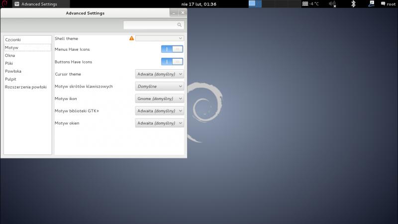 Na początku pobrałem gotową wersję instalacyjną iso z GNOME, nie było takiego menu. No dobrze, pobrałem Debiana Wheezy, apt-getem pobrałem gnome, x11, uruchomiłem system okien, i zobaczyłem nadal to samo menu. Dlatego właśnie zgłaszam się do Was z tym problemem. Myślę, że jakoś się da temu zaradzić. Dodam, że Motywu Shell nie mogę zmienić, myślę, że to może być powodem tego.