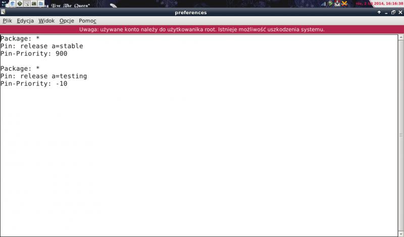 W ten sposób wszystkie pakiety domyślnie będą się instalowały z repozytorium wersji stabilnej, aby zainstalować coś z wersji testowej będziesz musiał wydać polecenie podobne do tego: