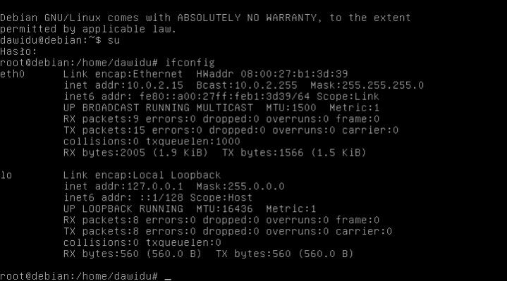 Poniżej zrzut ekranu z ipconfig i ifconfig