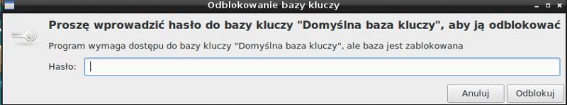 Mam debiana 8.1 Jessie. Po każdym uruchomieniu systemy mam komunikat żadajacy odblokowania haseł do bazy kluczy. Nie potrafie się go pozbyć. Bardzo proszę o pomoc..