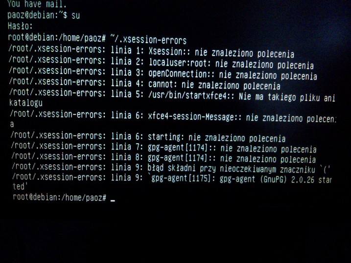 cat /home/nazwa_użytkownika/.xsession-errorsKod: Zaznacz cały